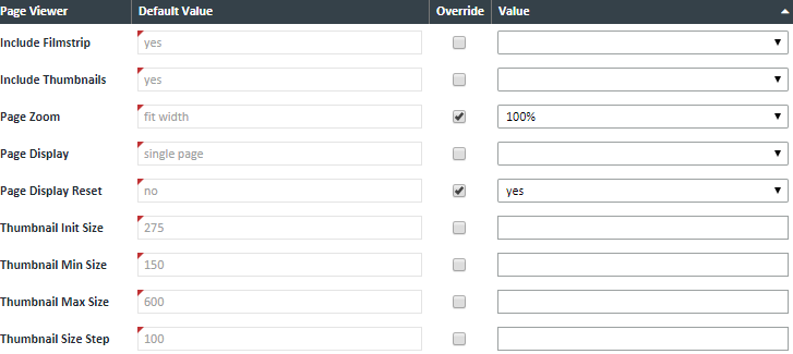 Page Viewer - These values describe the behavior of the page viewer portion of the Document Viewer