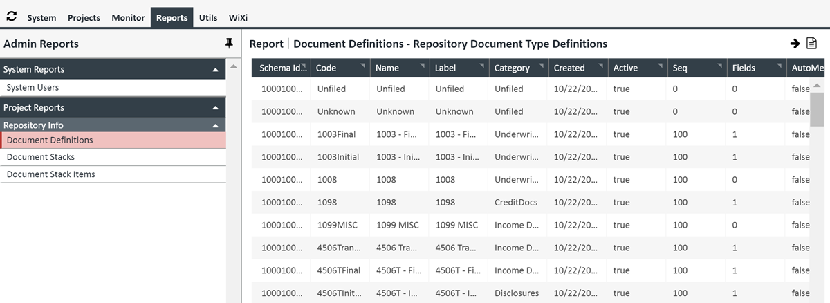The reports tab contains simple, one-touch reports for XDOC information. All reports output in .csv format for easy data manipulation. If there are specific reports your organization would like to see in this section, contact XDOC Customer Support and they will enter an enhancement request on your behalf.