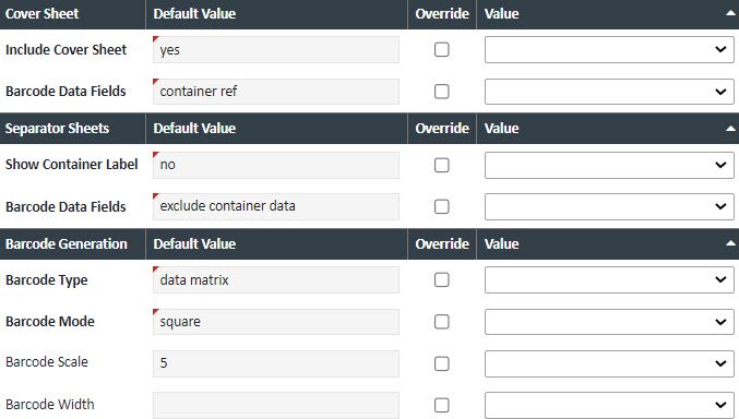 | Show Container Label | Yes/No to print the loan number on the separator sheets. This does not put the barcode data in the actual barcode, it just prints the label on the separator sheets |