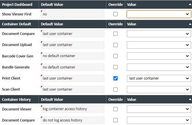 Container Defaults - These defaults control the default loan number that appears for various XDOC functions. As a reminder, when we say "container" we mean "loan number". The "use last container" setting uses ther last loan number the user was working on in XDOC and will only be used if this feature is turned on in the integration.