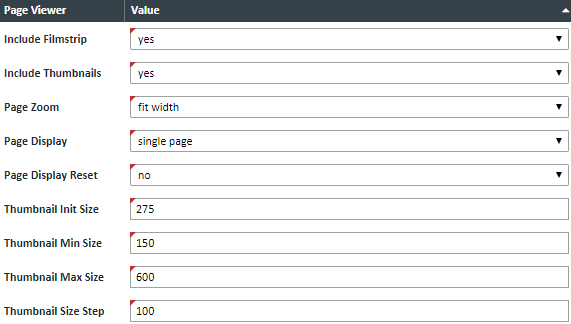 Page Viewer - These defaults describe the behavior of the page viewer portion of the Document Viewer
