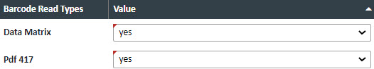 Barcode Read Types – These are the types of barcodes XDOC is configured to read. XDOC has options for two different kinds of bar codes, Data Matrix and PDF 417. Please choose "yes" for both.