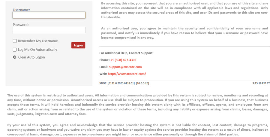 - Entering your username and password on the XDOC login page, and click LOGON.