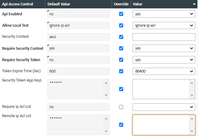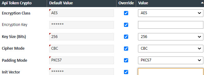 API Token Crypto - Defines the encryption for the tokens above. Configuration of these options may require assistance from Axacore Customer Support.