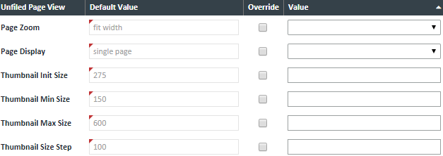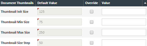 Document Thumbnails – When you create a document from pages in the File Room, the thumbnails for those pages can be viewed at the bottom of the screen in the "Document Pages" tab. These values describe the size of the thumbnails in the "Document Pages" tab.
