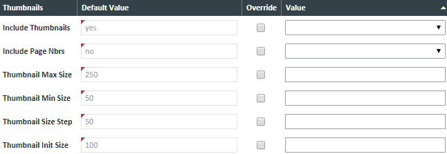| Include Thumbnails | Yes/No to include the option for Thumbnail mode |