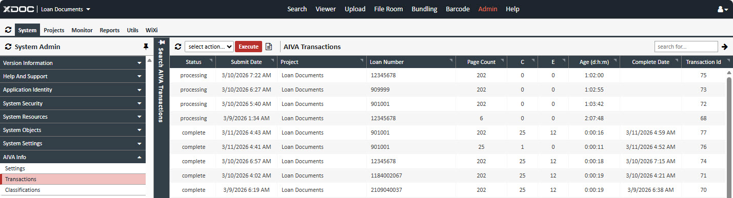 Total number of documents where Extraction Data exists in the transaction. - Age (d:m:h)