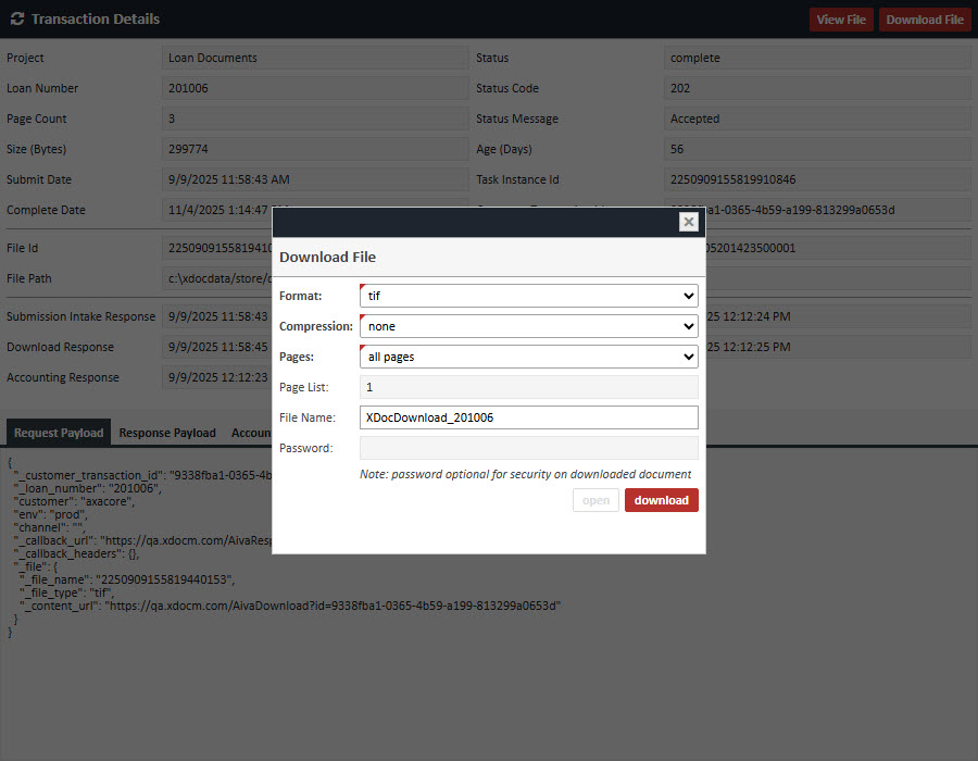XDocDownload_LoanNumber(e.g.,XDocDownload_201006). - Can be edited before downloading.