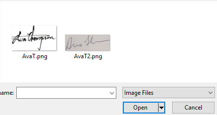 To add the signature file, click "Choose File," choose the signature, and click OPEN