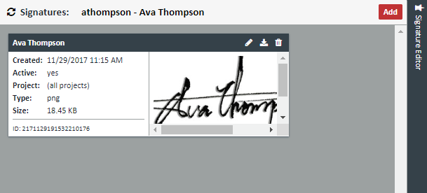 To add a signature, click the Add button. The Signature Editor will appear In the Signature Editor screen that appears, fill out the following fields:
