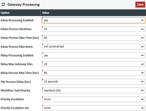 | Inbox Processing Enabled | If disabled, no Gateway inbox processing will occur regardless of the Gateway active setting |