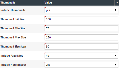 | Include Thumbnails | Yes/no value to view thumbnails. Always set this to "yes" |