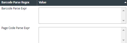 | Page Code Parse Expr | Regular expressions that apply to barcode data for parting page code specific barcodes. Enter one expression per line with the following match groups: pageCode, pageCodeDocType, pageCodePageNbr - This is rarely used anymore, but if you need to use it you can still do so. |