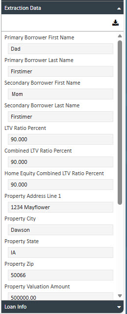 To export the extracted data in MISMO XML format, click the Download icon. The file will be saved to your local drive.
