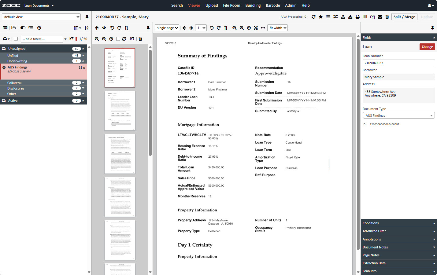 - Drag the selected documents onto the Page Viewer section of the Document Viewer.